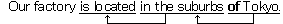 この文で、“in the suburbs” は動詞句 “is located” を修飾する副詞句の働きをし、“of Tokyo” は名詞 “suburbs”